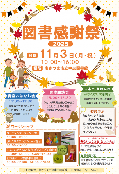 11月3日(月・祝)は、ぜひ図書館に遊びにきてください。