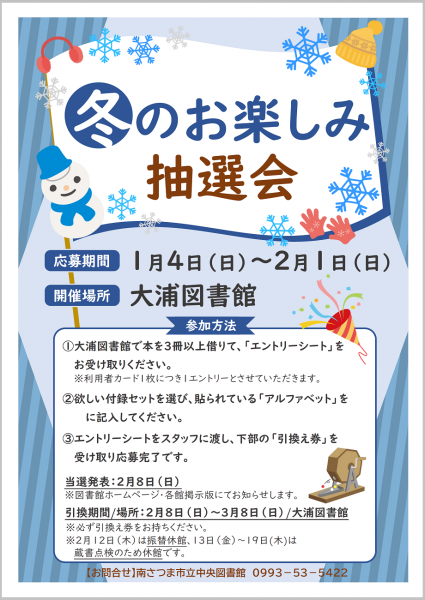 ※当選者は、必ず引換券を持って大浦図書館までお越しください。